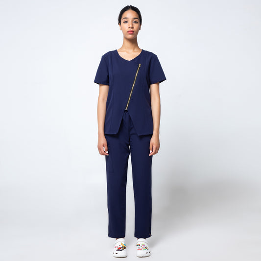 Navy Incline Zip Front Scrubs Set